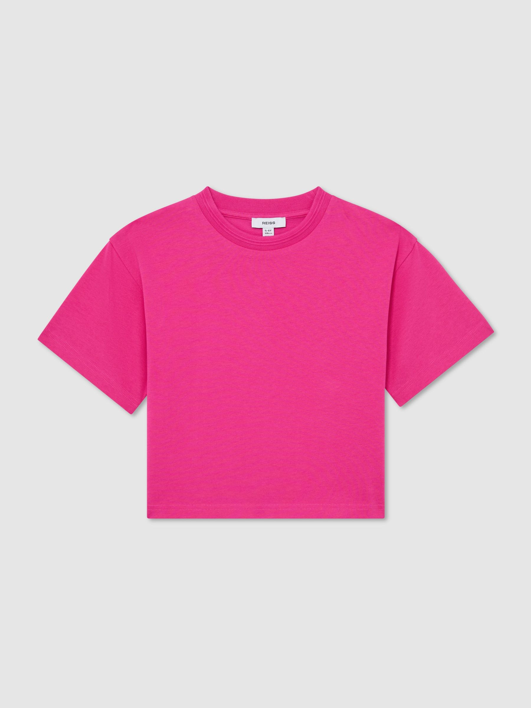 13-14 yrs Cotton Ribbed-Neck Oversized T-Shirt in Pink