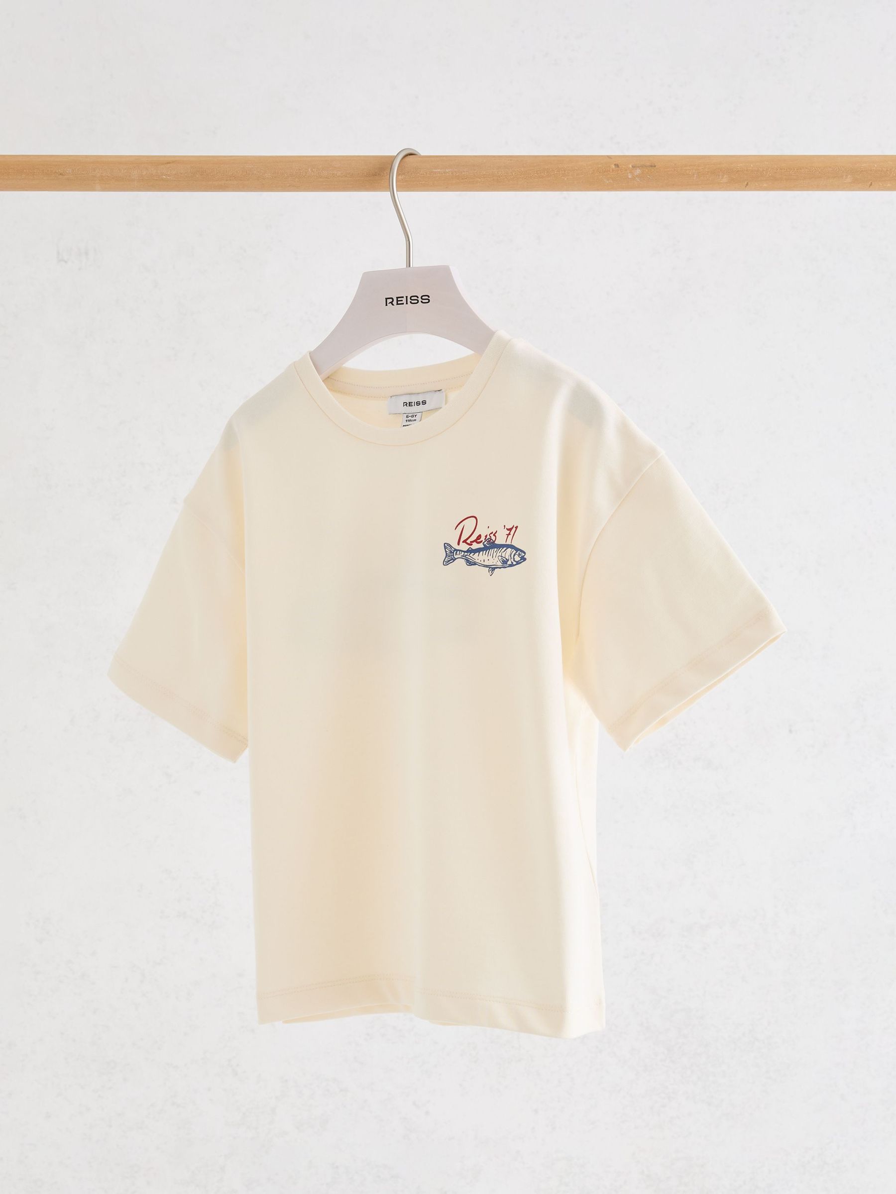 9-13 yrs Cotton Fish Logo Print T-Shirt in White