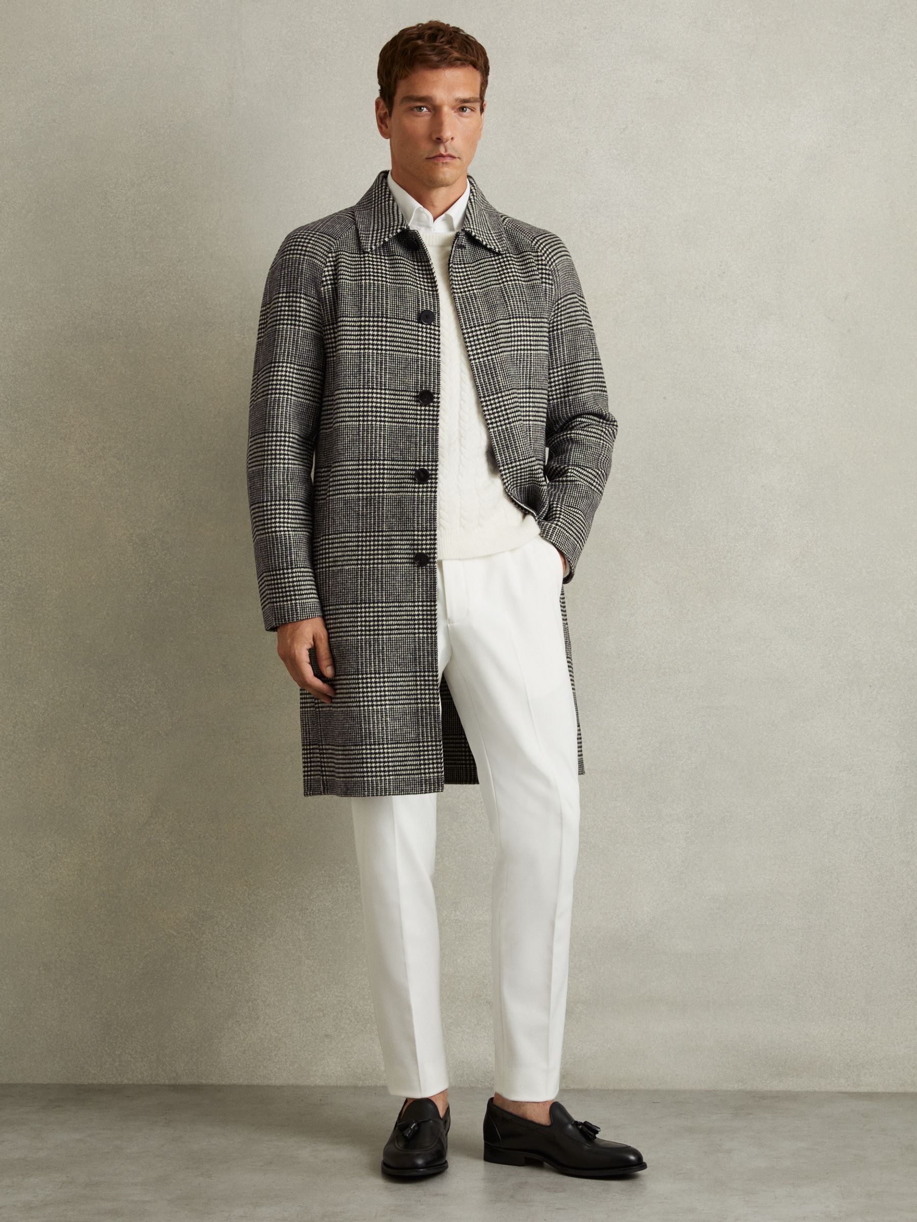 Checked Wool-Blend Car Coat in Black/White