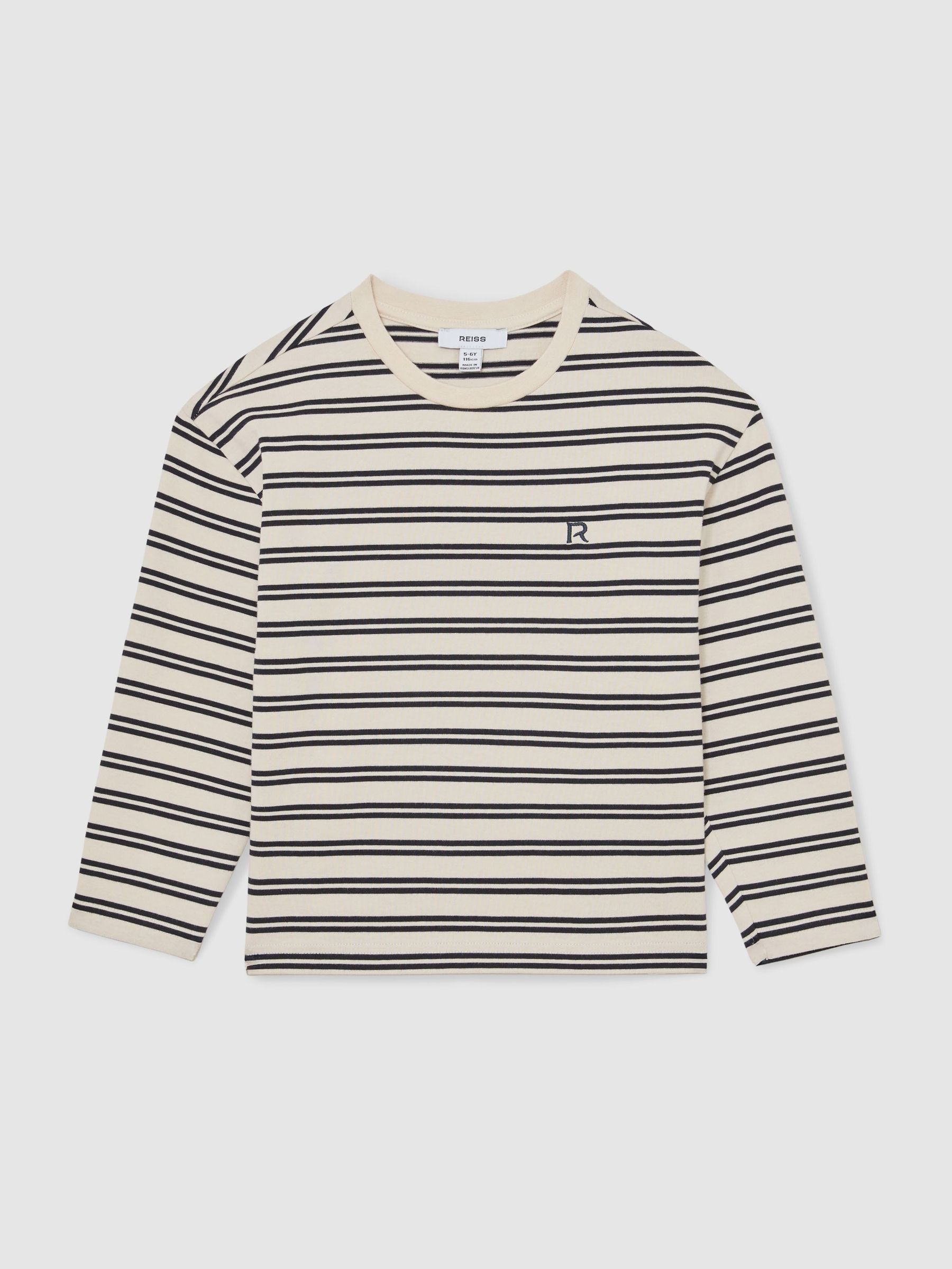 13-14 yrs Cotton Stripe Long-Sleeve T-Shirt in Navy/White