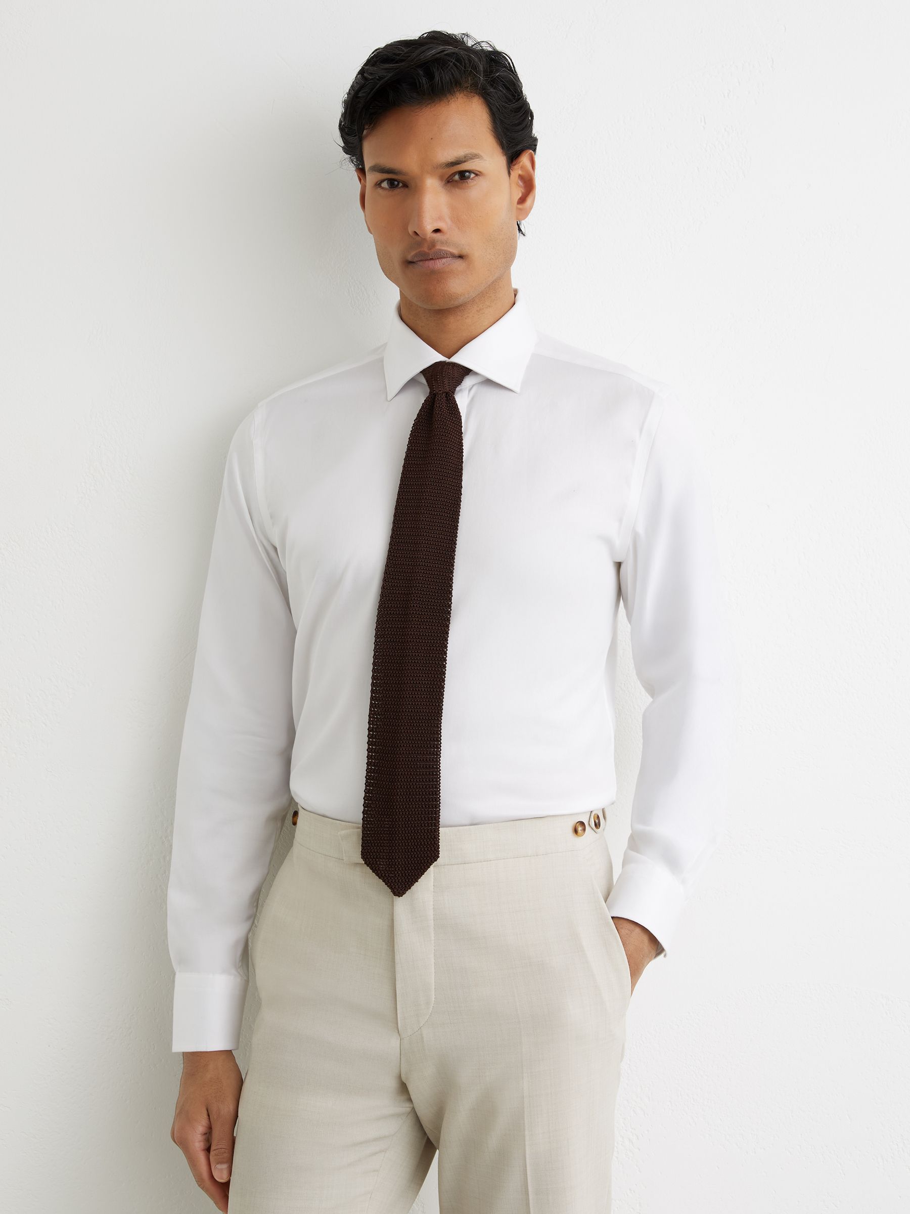 Linen Cutaway-Collar Regular-Fit Shirt in Dark Brown