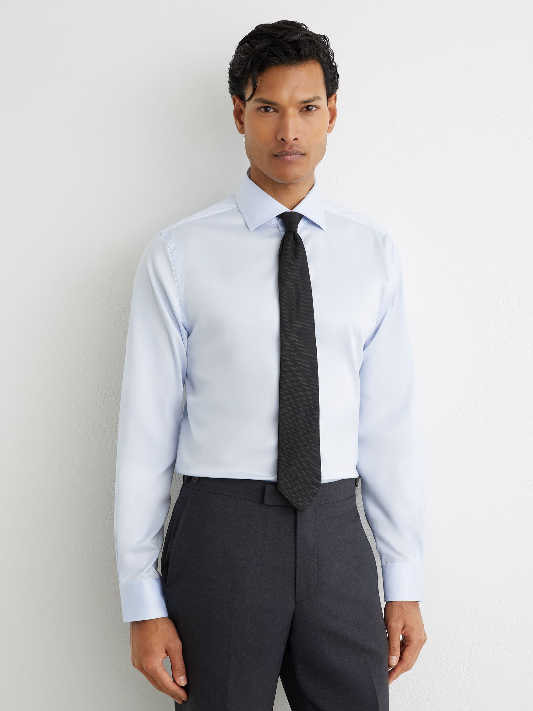Regular Fit Cotton-Blend Stretch Shirt in Soft Blue
