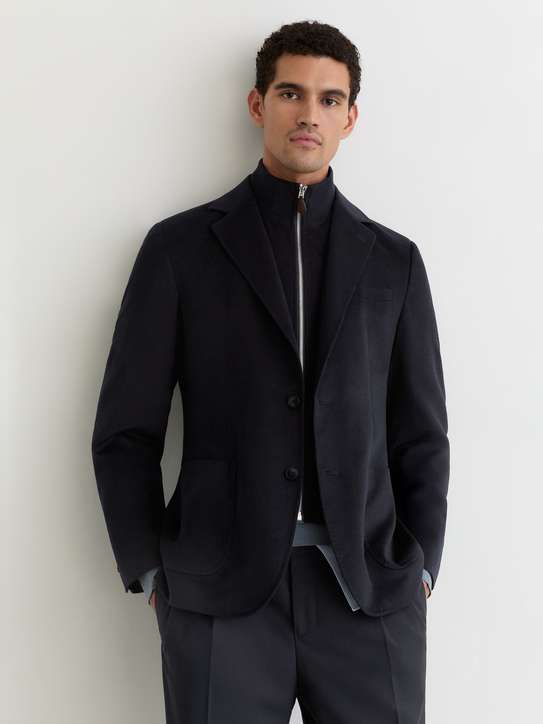 Flannel Single-Breasted Blazer Tailored-Fit with Wool in Navy